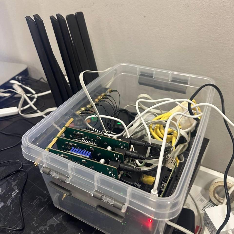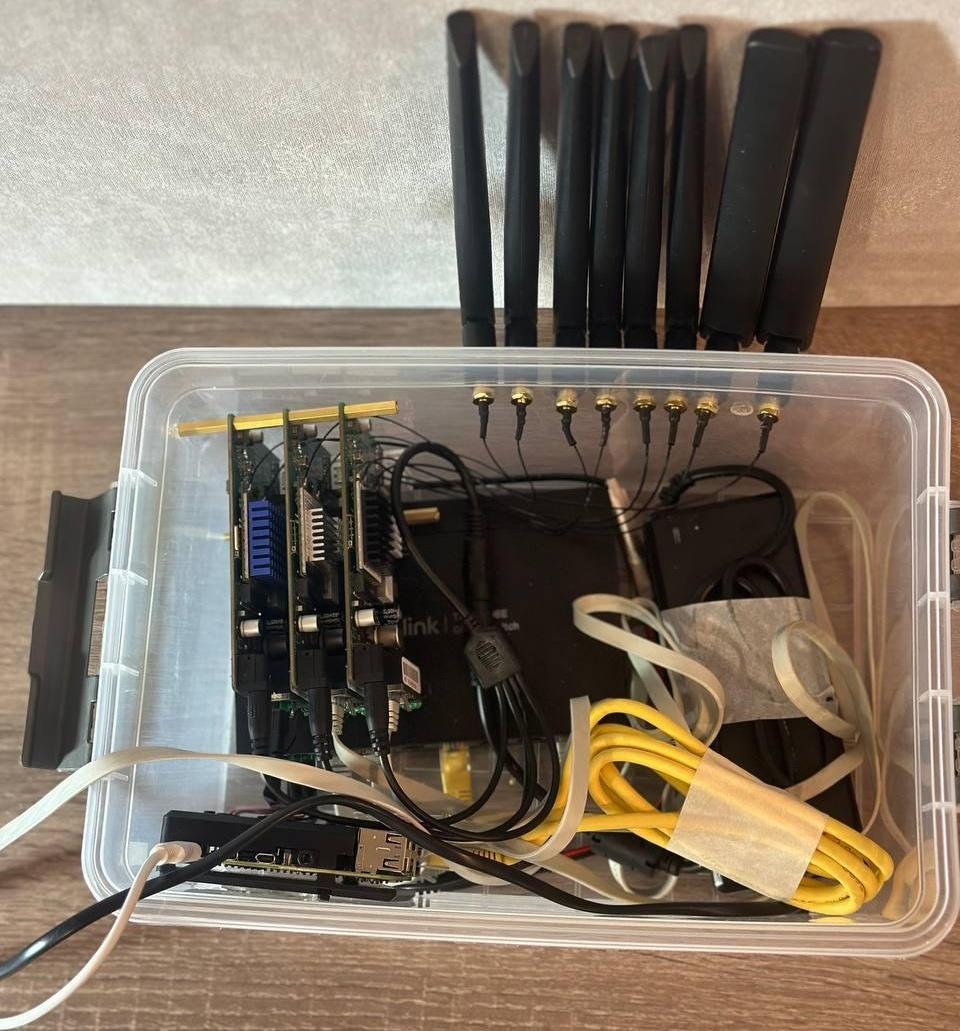 Собрал временный кейс для удобства тестирования и переноски. Всё установлено в прозрачный бокс — это решило проблему с антеннами, которые ранее вылетали из разъёмов без фиксации. Теперь стабильно, но остаются задачи, над которыми работаю.